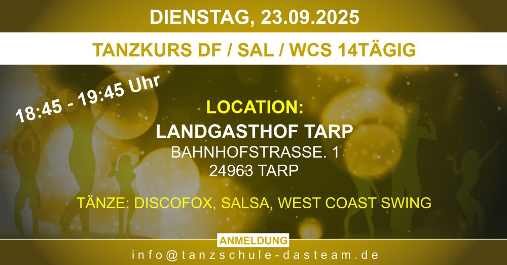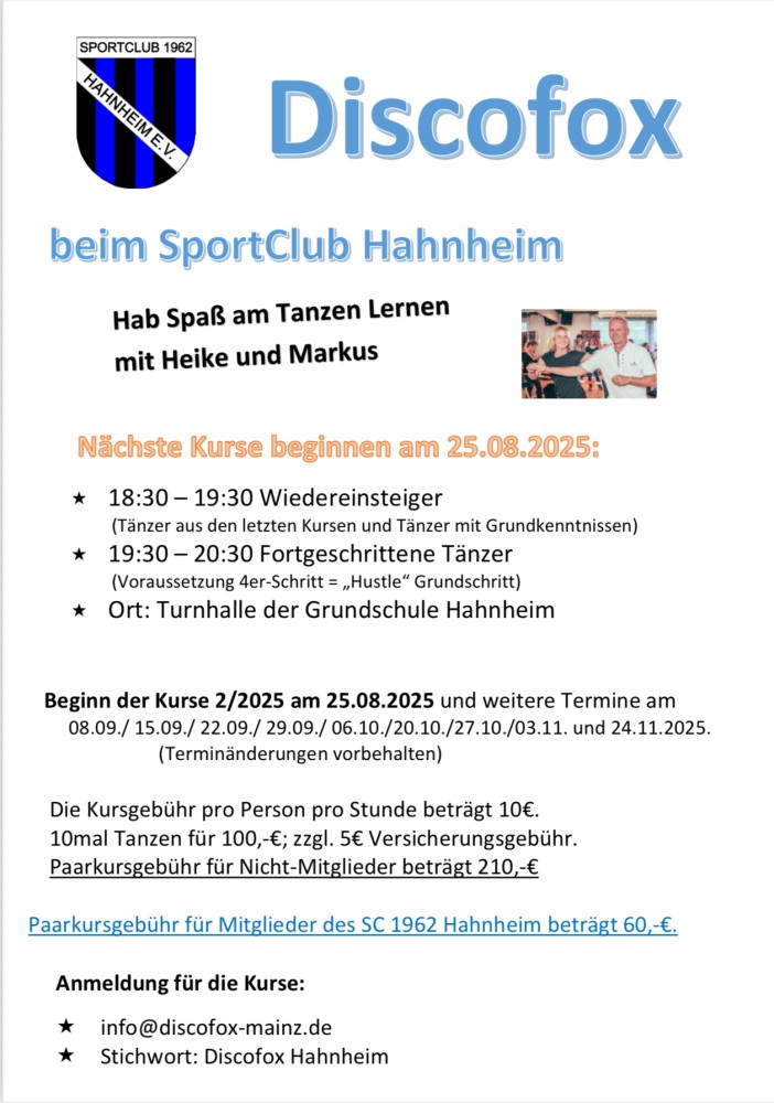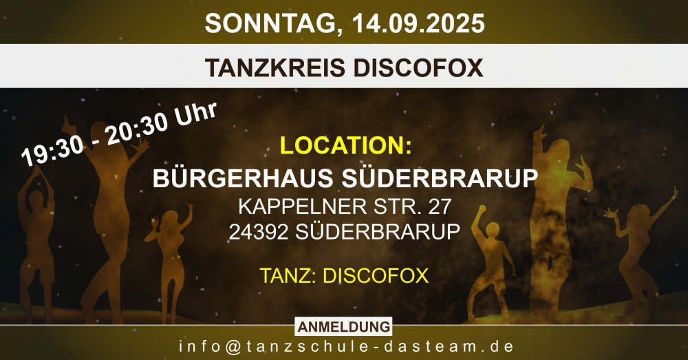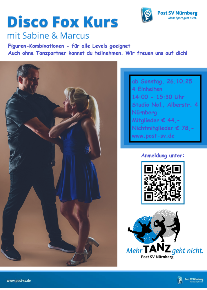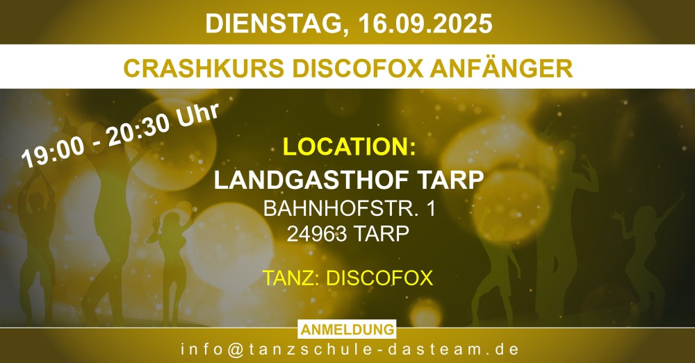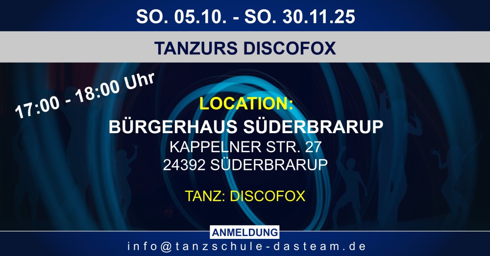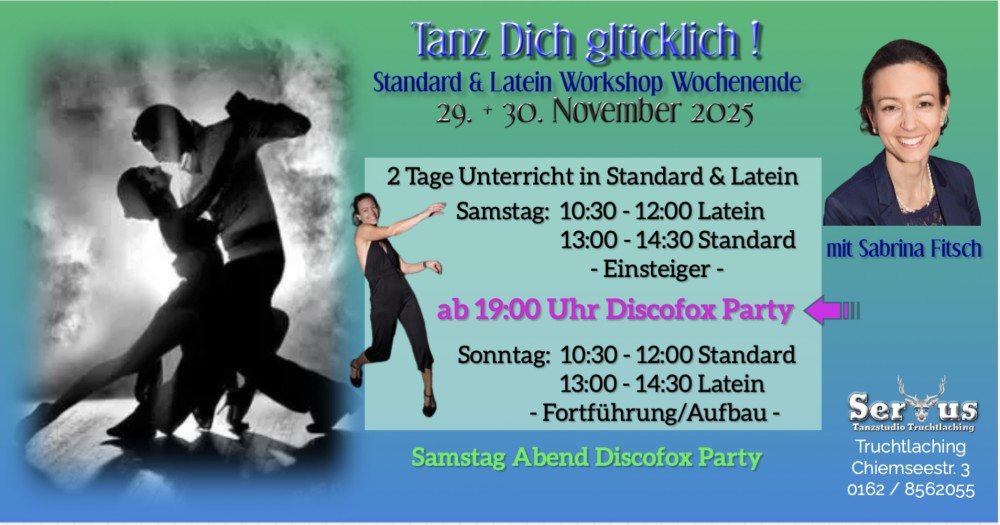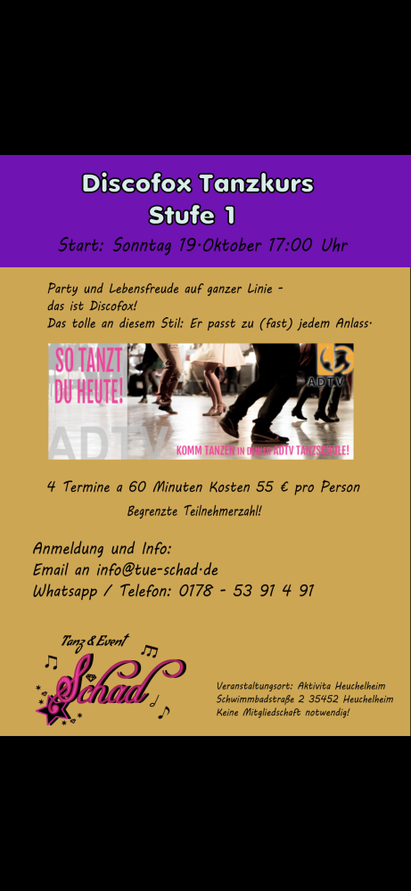 Tänze: Discofox, Schlagerfox, Standardtänze, Discofox, West Coast Swing...