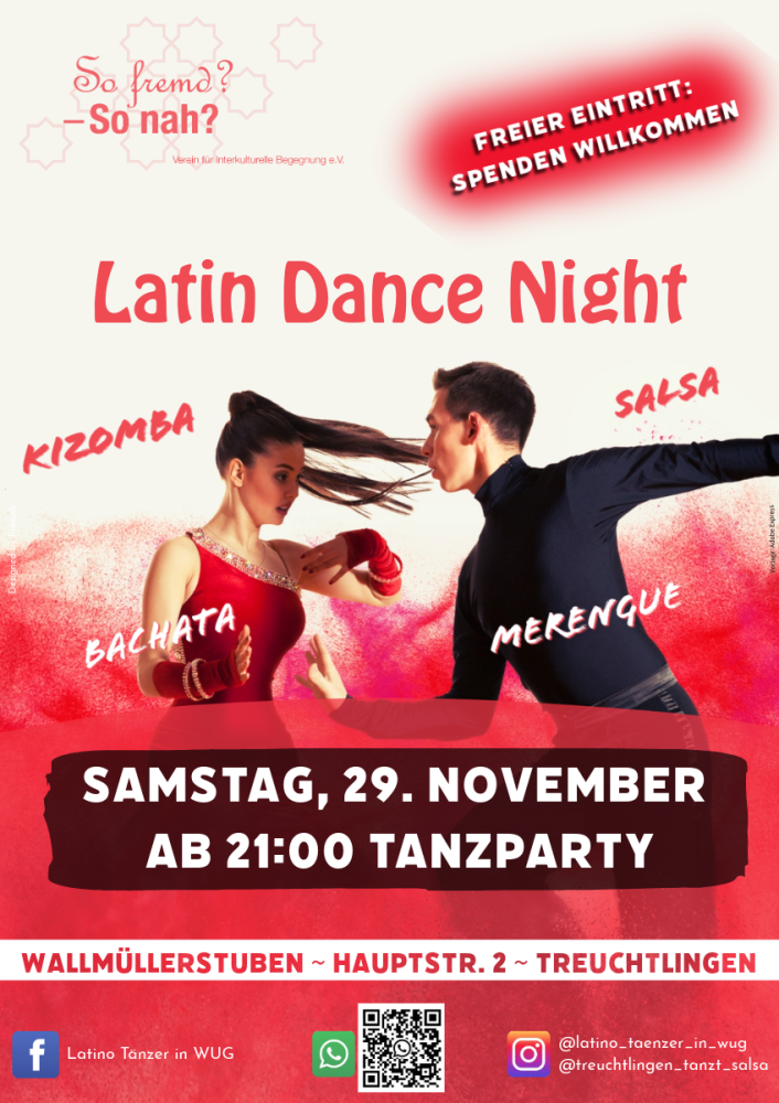 Tänze: Bachata, Kizomba, Salsa, Tango Argentino, West Coast Swing u.v.m...