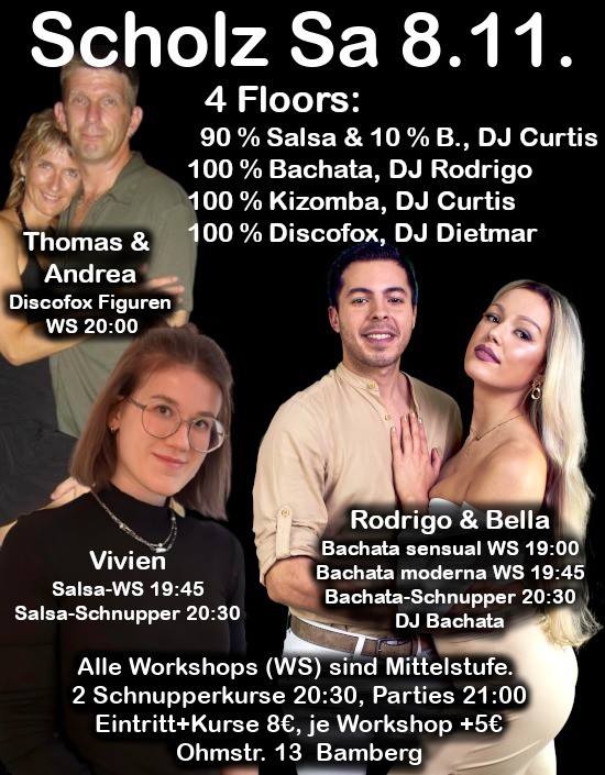Tänze: Bachata, Boogie Woogie, Discofox, Kizomba, Rock and Roll u.v.m...