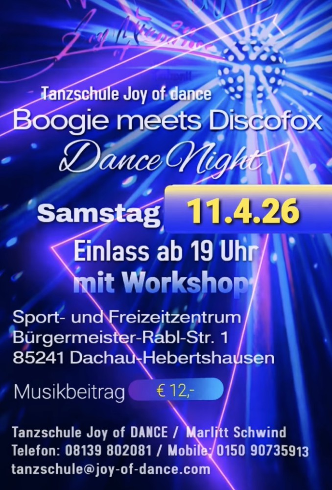 Tänze: Bachata, Boogie Woogie, Discofox, Discofox Slow, Discochart, Salsa, Langsamer Walzer, Wiener Walzer