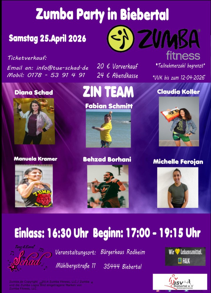 2 Stunden Tanzen wir zu Latino Musik, Pop, Bollywood, etc mit einem tollen Instructoren Team.