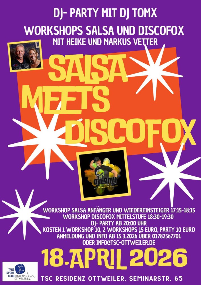 Tänze: Bachata, Boogie Woogie, Discofox, Discofox Slow, Salsa